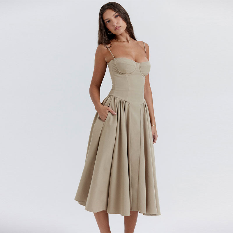 Realza cualquier ocasión especial con nuestro Glamour Atemporal: Nuevo Vestido de Fiesta de Verano Mía. Confeccionado con los tejidos de la más alta calidad, este vestido presenta un ajuste ceñido que resalta las curvas y un seductor diseño sin espalda. Con sus detalles intrincados y una confección exquisita, es una verdadera obra de arte, la elección perfecta para una fiesta glamurosa, un evento formal por la noche o una velada de verano.